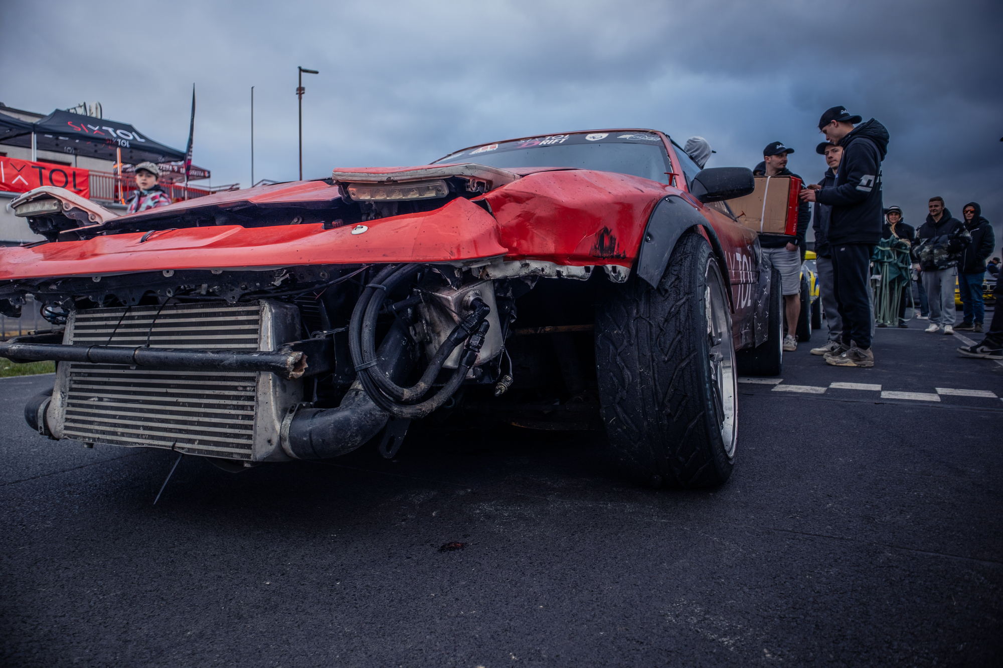 Supra napriek tomu držala. Aj keď na nej bolo po preteku vidieť každý kontakt, každý tvrdý nájazd a každý centimeter súboja, dokázala prejsť pretekom až do finále. Poškodený predok, chýbajúce svetlá, odkrytý intercooler, odreniny po celom vozidle a unavená karoséria jasne ukazovali, že sa nešlo na istotu. Toto nebola výstavná jazda. Toto bol ostrý pretek, v ktorom auto poriadne dostalo zabrať..jpg)