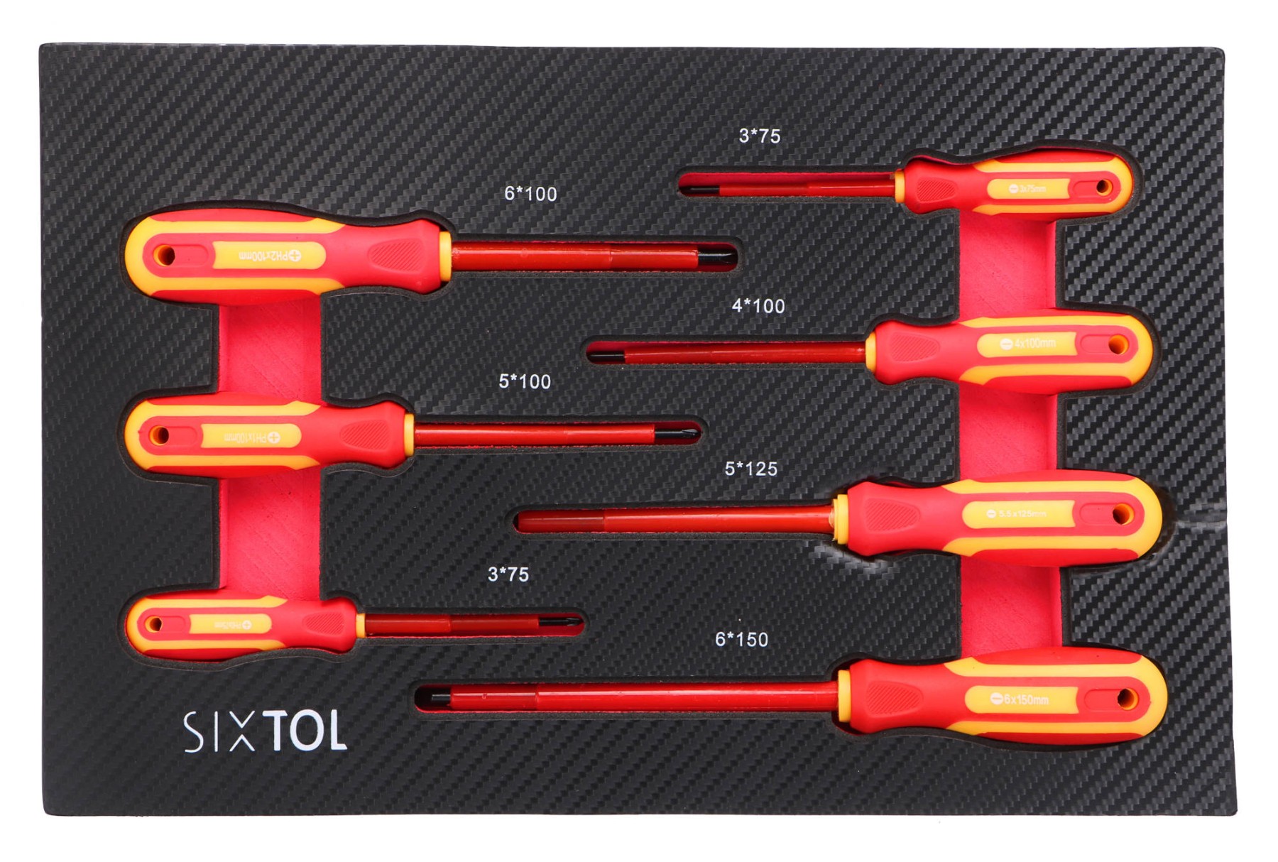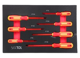 - 2x Presné skrutkovače: SL3 × 100 mm (plochý); PH0 × 100 mm (krížový)- 8. Zásuvka – 7x izolované (elektrikárske) skrutkovače