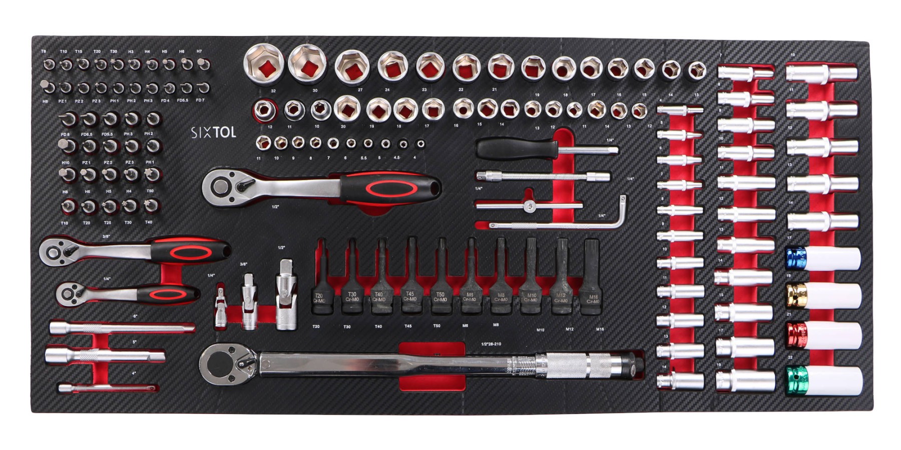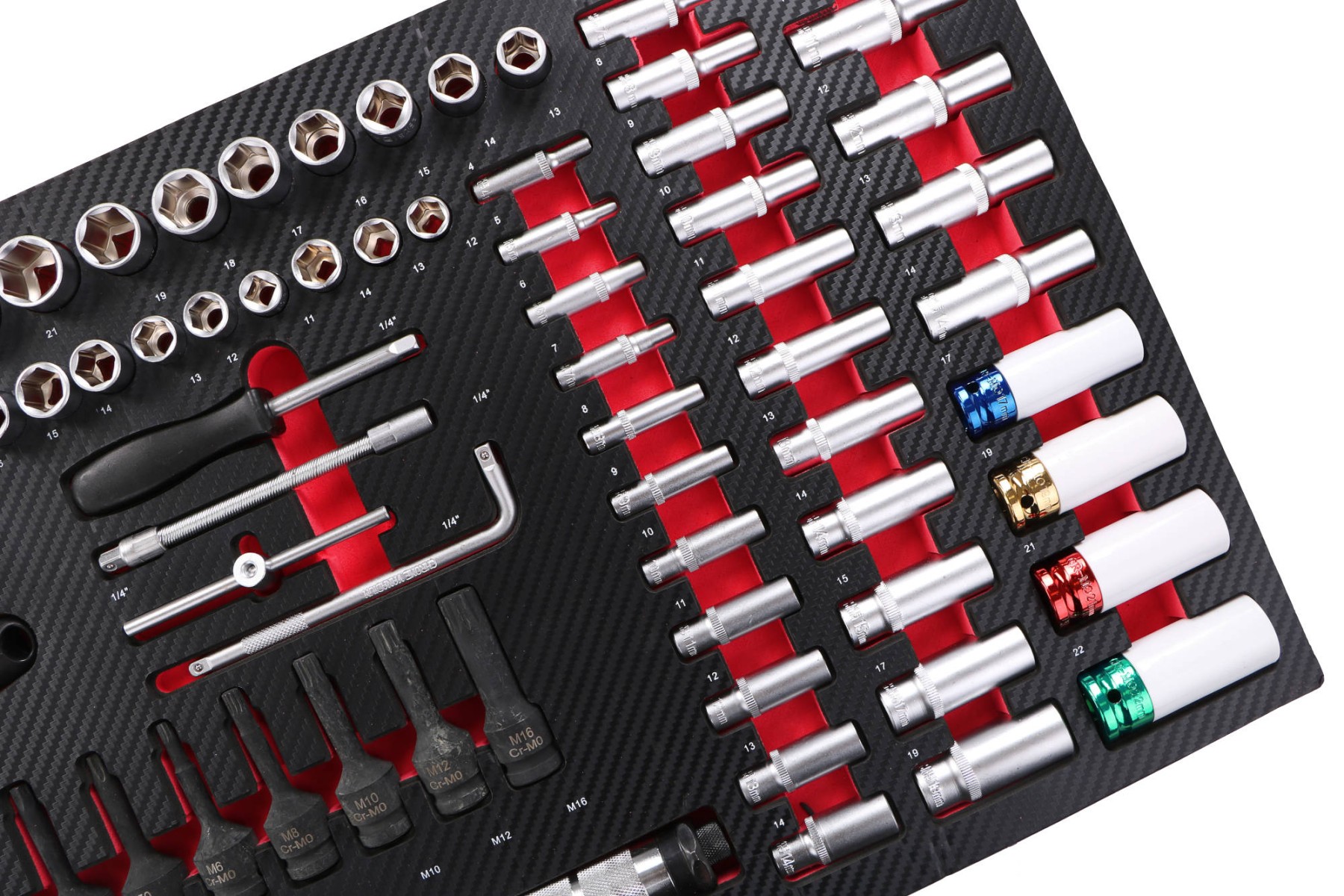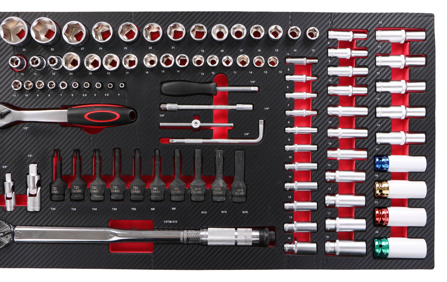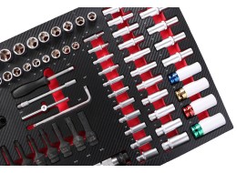 - Obsahuje 1559 ks náradia v presných EVA organizéroch