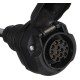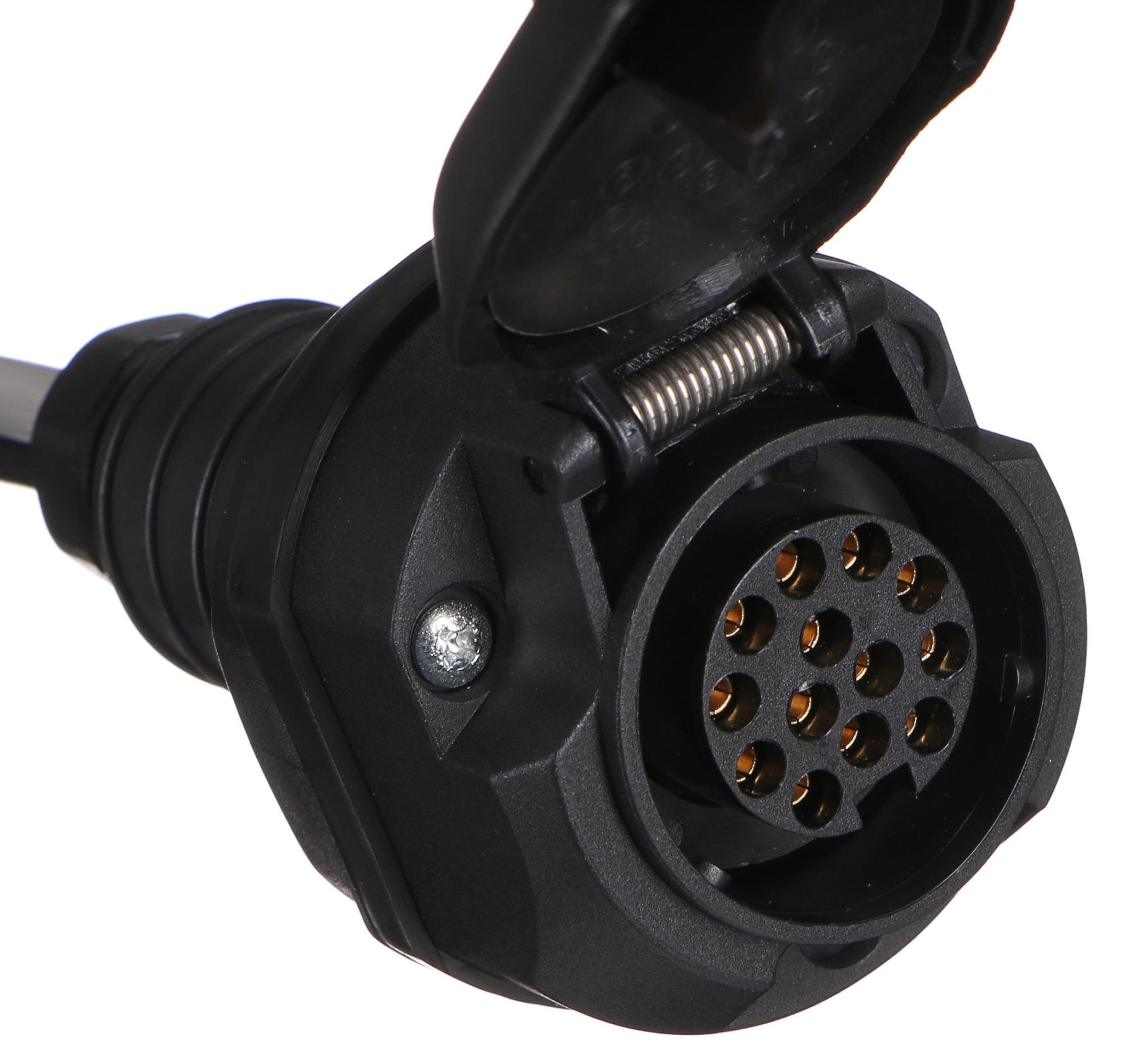 - Robustná 13-pinová zásuvka s krytkou na ochranu kontaktov.