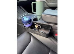 Univerzálny organizér/držiak nápojov do auta medzi sedadlá CAR STORAGE 3 je navrhnutý tak, aby vyplnil medzeru medzi prednými sedadlami a stredovou konzolou, čím poskytuje dodatočný úložný priestor pre rôzne drobnosti. Je vybavený aj integrovaným držiakom na nápoje, ktorý zvyšuje komfort počas jazdy. Jeho inštalácia je jednoduchá a nevyžaduje žiadne náradie. Materiál je odolný a ľahko sa čistí, čo zabezpečuje dlhú životnosť produktu. Vďaka svojmu dizajnu pomáha udržať interiér vozidla organizovaný a prehľadný, čo prispieva k pohodlnejšej jazde.