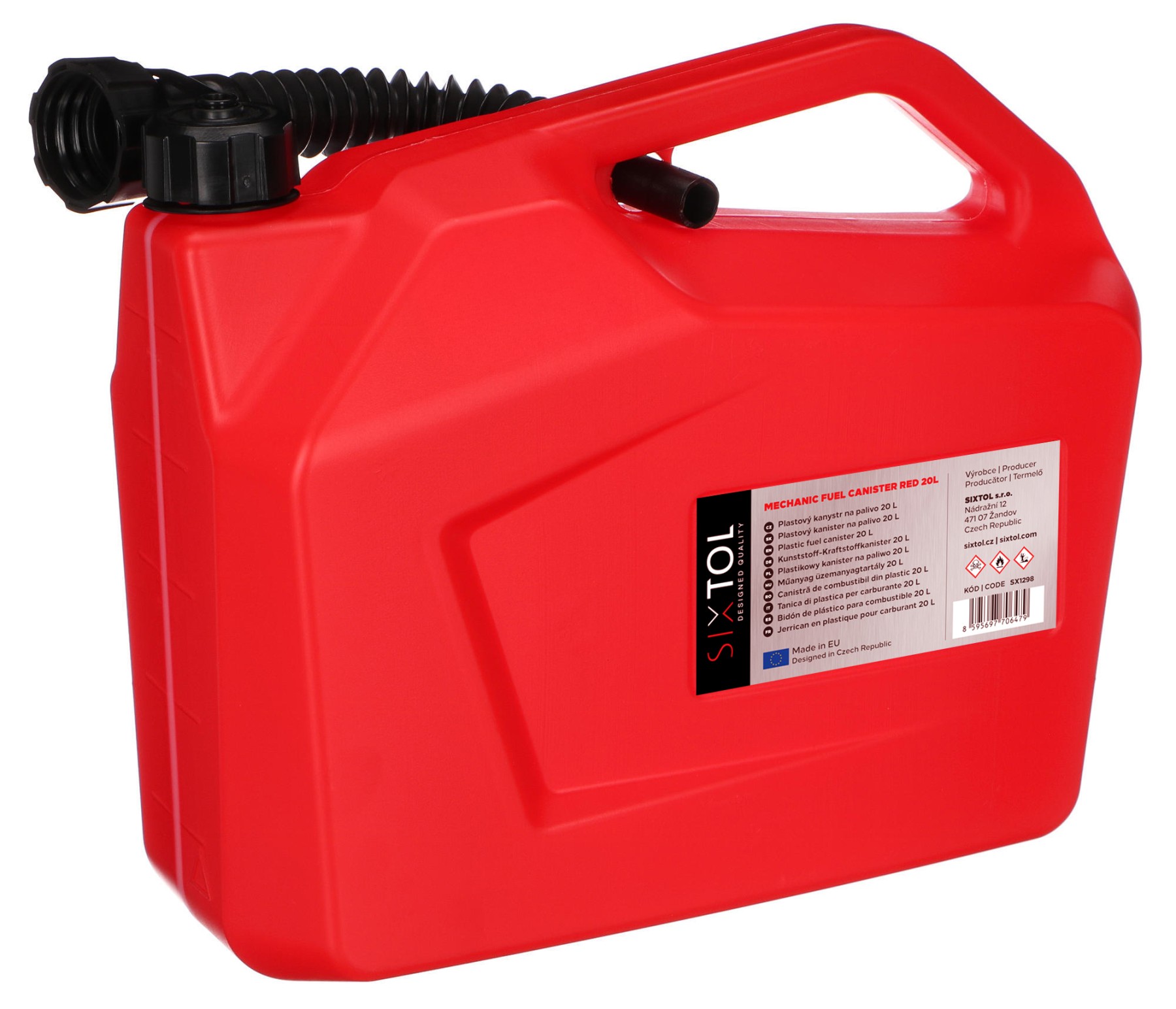 Plastový kanystr MECHANIC FUEL CANISTER RED 20L, červený SIXTOL