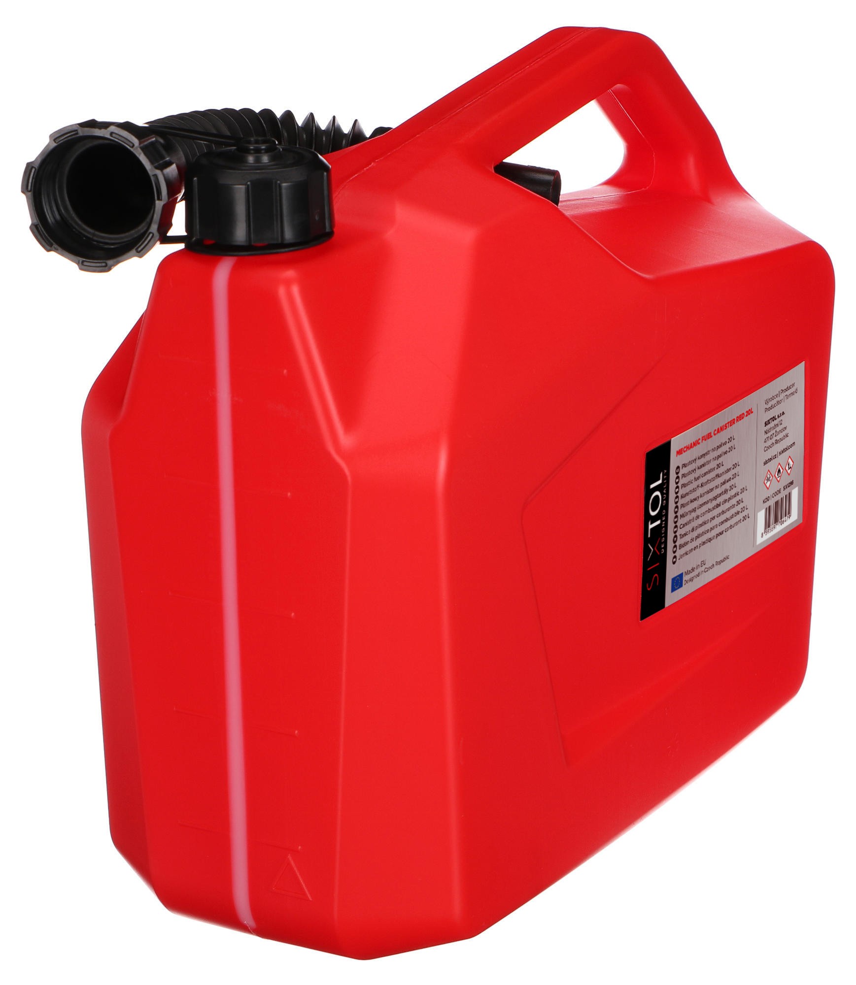 Kanystr SIXTOL MECHANIC FUEL CANISTER RED 20L je ideálny na bezpečný transport pohonných hmôt v automobiloch, na stavbách, v priemyselných prevádzkach aj pre núdzové situácie. Je vyrobený z vysoko odolného HDPE polyetylénu, ktorý zaručuje chemickú stabilitu, dlhú životnosť a odolnosť proti nárazom. Vďaka priehľadnému okienku a mierkam hladiny kapaliny (2L, 4L, 6L, 8L, 10L, 12L, 14L, 16L, 18L, 20L) je možné presne sledovať množstvo paliva. Súčasťou balenia je ohybná hubica, ktorá umožňuje jednoduché a presné nalievanie paliva bez rizika rozliatia. Kanystr spĺňa požiadavky UN certifikácie, čo garantuje jeho bezpečnosť pri preprave pohonných hmôt. Ekologicky šetrný materiál zabezpečuje, že kanystr je plne recyklovateľný.