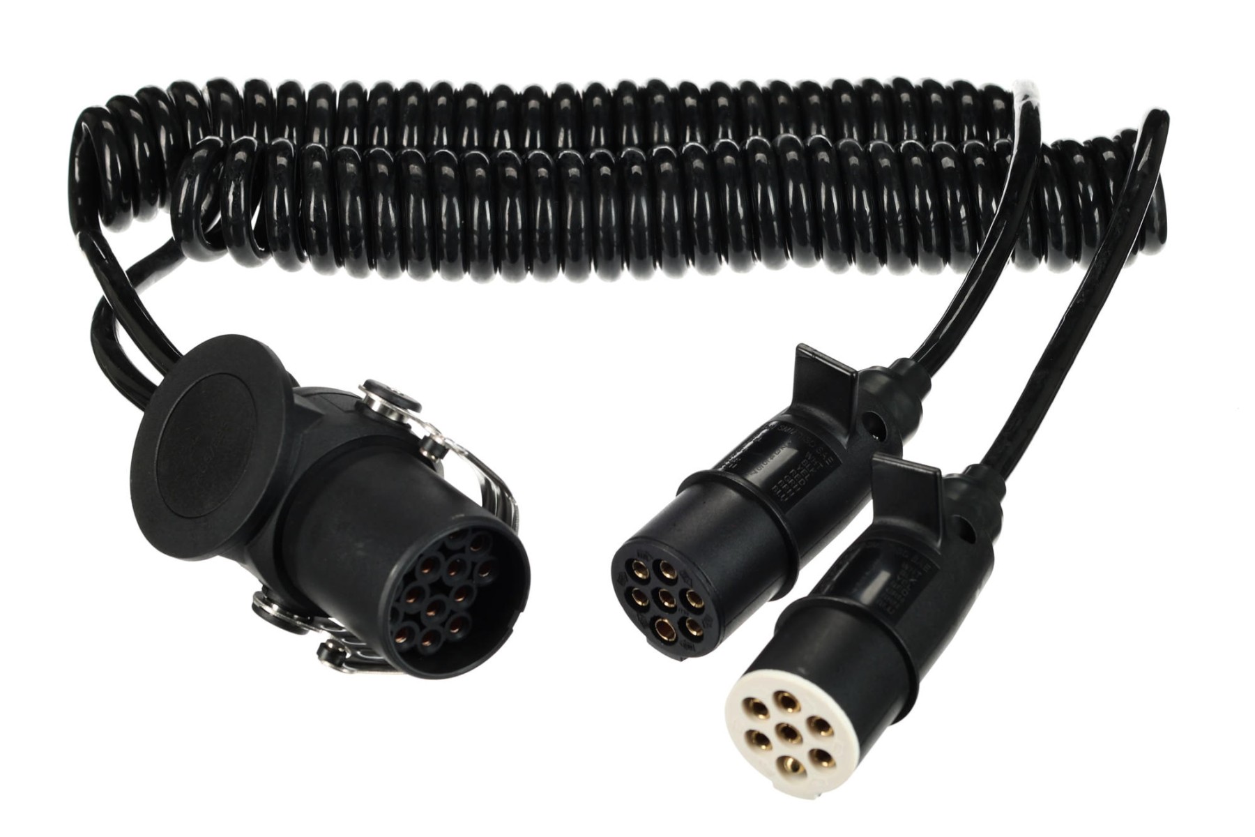 Prepojovací špirálový adaptér z 15pin na 2x 7pin zástrčku (S+N) TRAILER CABLE 9, 24V, 3,5m SIXTOL