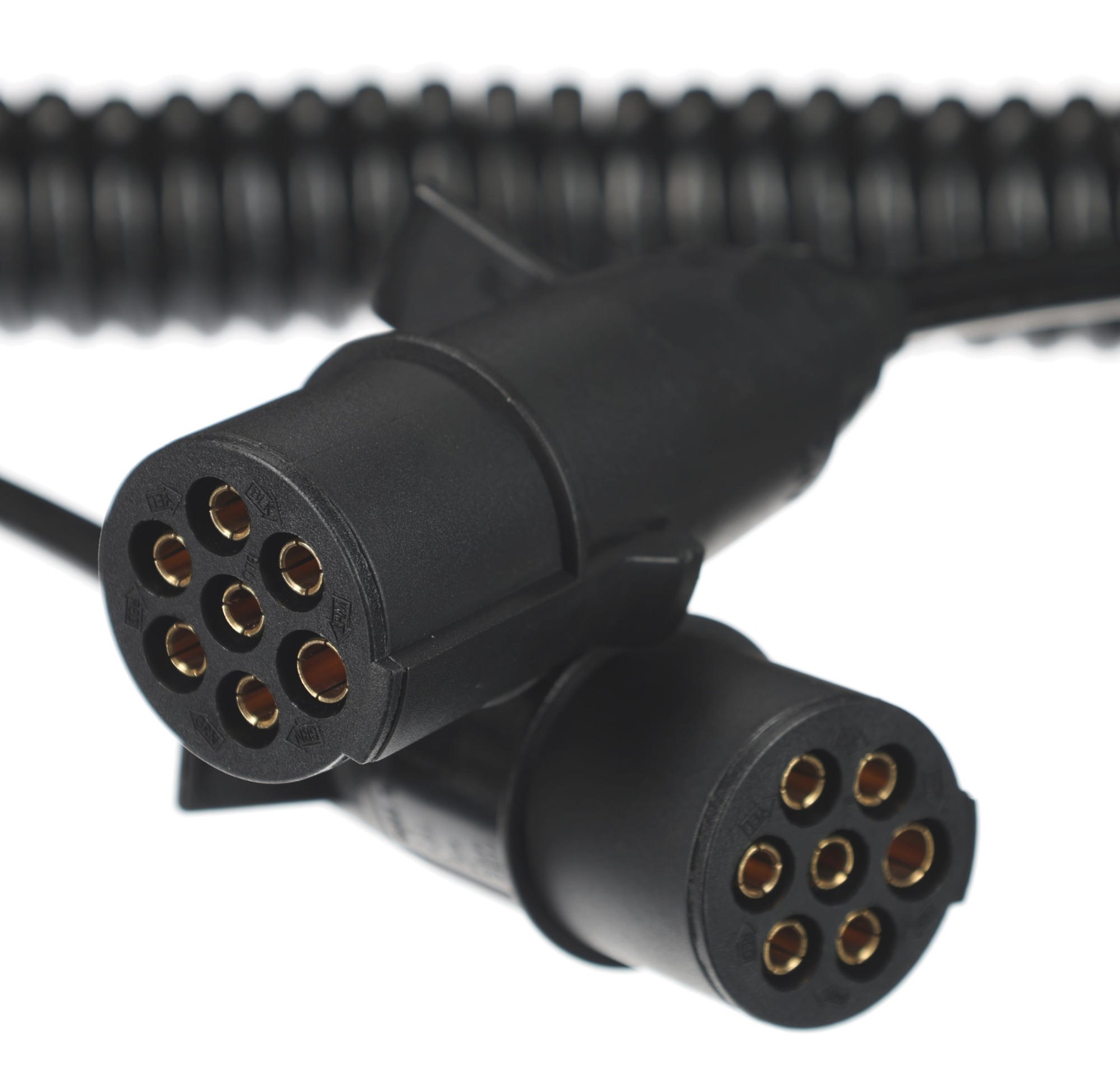 Prepojovací špirálový kábel SIXTOL TRAILER CABLE 11 slúži na prepojenie 7pinových konektorov typu N medzi ťahačom a prívesom u nákladných vozidiel. Kábel je určený pre 24V systémy a zabezpečuje spoľahlivý prenos elektrických signálov pre základné funkcie prívesu, ako sú osvetlenie a signalizácia. Špirálové prevedenie umožňuje flexibilnú manipuláciu, obmedzuje prevesenie kábla a pomáha chrániť kábel pred poškodením počas jazdy. Plastová zástrčka poskytuje pevné a stabilné spojenie a je odolná voči bežnému opotrebeniu aj náročným prevádzkovým podmienkam. Konštrukcia je navrhnutá na dlhodobé používanie v každodennej prevádzke.