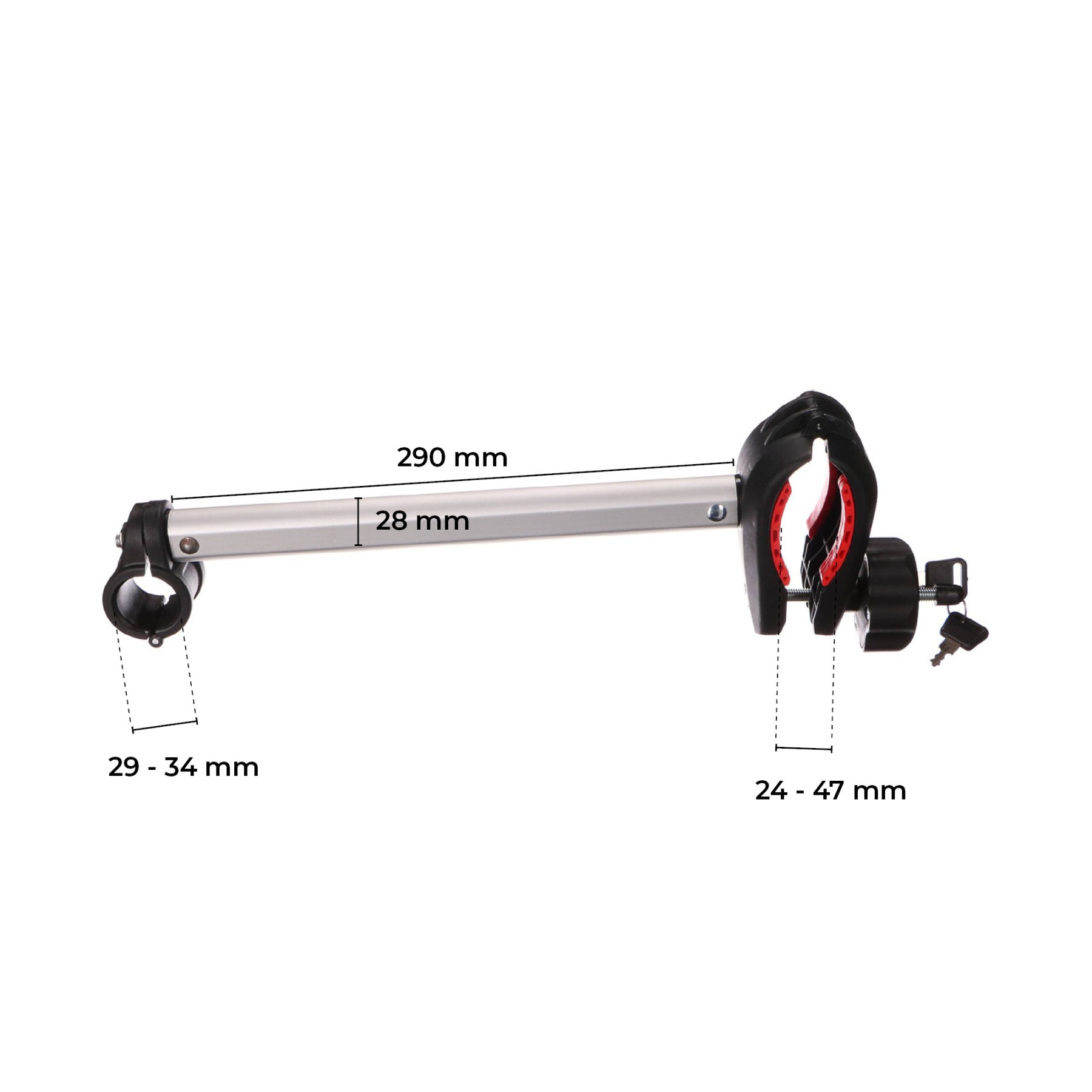 gumovou vložkou, ktorá chráni rám pred poškrabaním. Objímka pre rám nosiča má vnútorný priemer 30 - 33 mm. Rameno je vyrobené z hliníka a svorky sú z odolného ABS plastu. Svorka na upevnenie rámu bicykla je vybavená zámkom, ktorý chráni bicykel pred odcudzením z nosiča. Rameno je vhodné pre nosič bicyklov SIXTOL E-BIKE 2 SX1014.