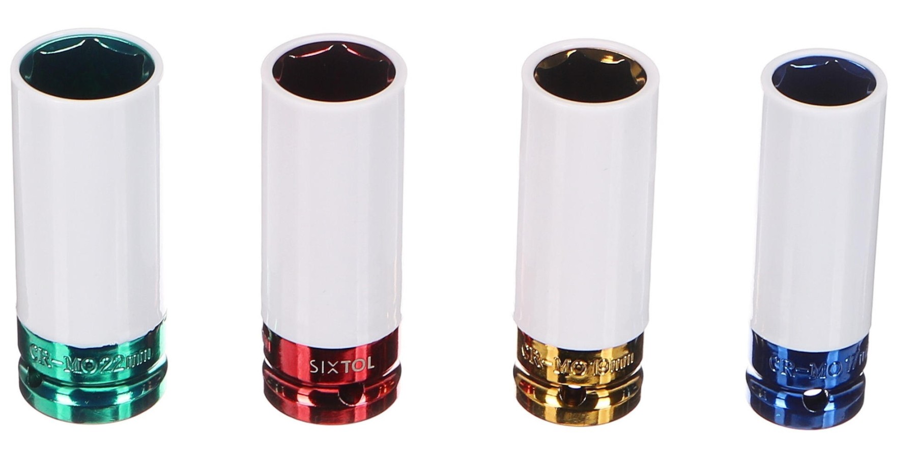 Sada SIXTOL MECHANIC IMPACT 2 obsahuje štyri vysoko odolné rázové hlavice vyrobené z chróm-molybdénovej ocele (CrMo), ktorá zabezpečuje dlhú životnosť a odolnosť voči vysokému zaťaženiu. Hlavice majú plastový ochranný povlak, ktorý zabraňuje poškriabaniu ráfikov pri práci. Farebné odlíšenie jednotlivých veľkostí uľahčuje rýchlu orientáciu v sade medzi veľkosťami 17, 19, 21 a 22 mm. Hlavice sú určené pre pneumatické a elektrické rázové utahováky s uchytením 1/2".