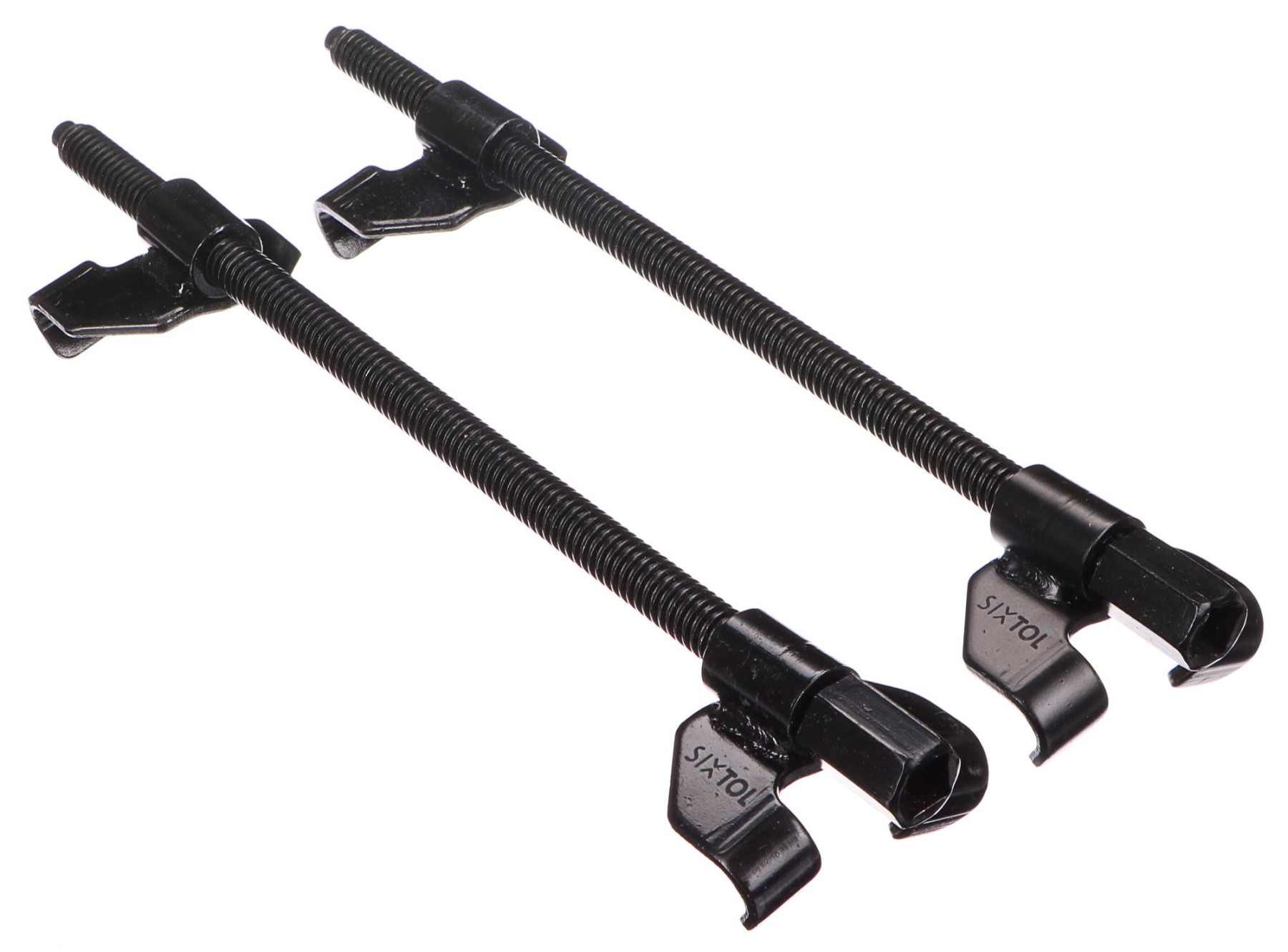 Súprava dvoch sťahovákov pružín SIXTOL s dĺžkou 270 mm z robustnej ocele. Sťahováky sú vhodné pre všetky bežné typy pružín vrátane stĺpcových, MacPherson a nezávislých pružín. Na koncoch sú osadené štvorhranom pre račňu o veľkosti 1/2" a prácu s pružinou pri zaťažení uľahčujú jemné závity. Bezpečnosť práce je zaručená špeciálne tvarovanými dvojramennými úchytmi.