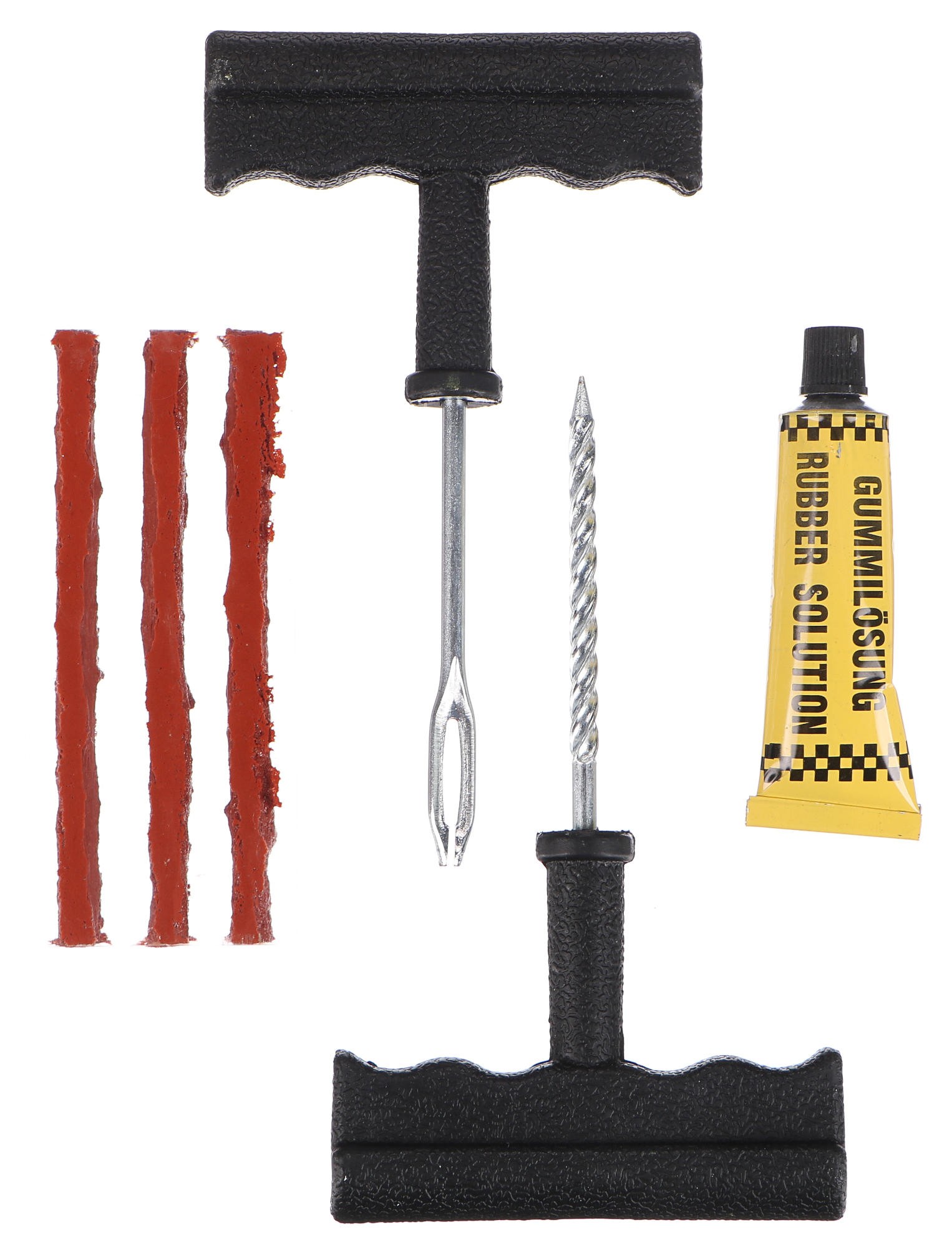 Inovatívna súprava na opravu defektu pneumatiky CAR TIRE REPAIR SET 1 je nevyhnutným pomocníkom každého vodiča. Umožní vám ľahko a rýchlo vyriešiť nečakaný defekt bez nutnosti navštíviť servis bez ohľadu na to, či ste na dlhej ceste, v práci alebo doma.Návod na použitie: Nájdite miesto, kde je pneumatika prepichnutá, prípadne odstráňte predmet, ktorý spôsobil defekt. Do otvoru zasuňte prieťažník a následne ho preťahujte smerom hore a dole - do doby než bude ľahko prechádzať otvorom - týmto je otvor vyčistený a pripravený. Knôt zbavený ochrannej fólie prevlečte otvorom vidlice a naneste naň vulkanizačný roztok. Zastrčte vidlicu s nasadeným knôtom do otvoru tak, aby jeho polovica zostala z vonkajšej strany pneu, potom otočte vidlicou a pomaly ju vytiahnite. Odrežte zvyšok knôtu čo najbližšie k pneumatike.