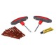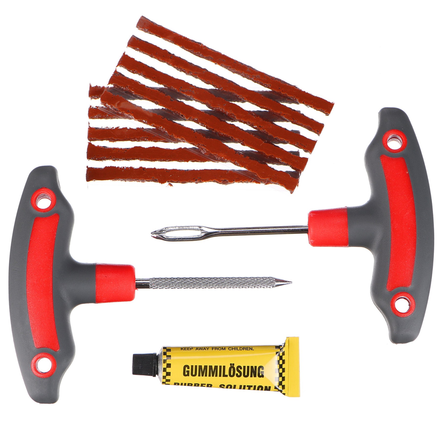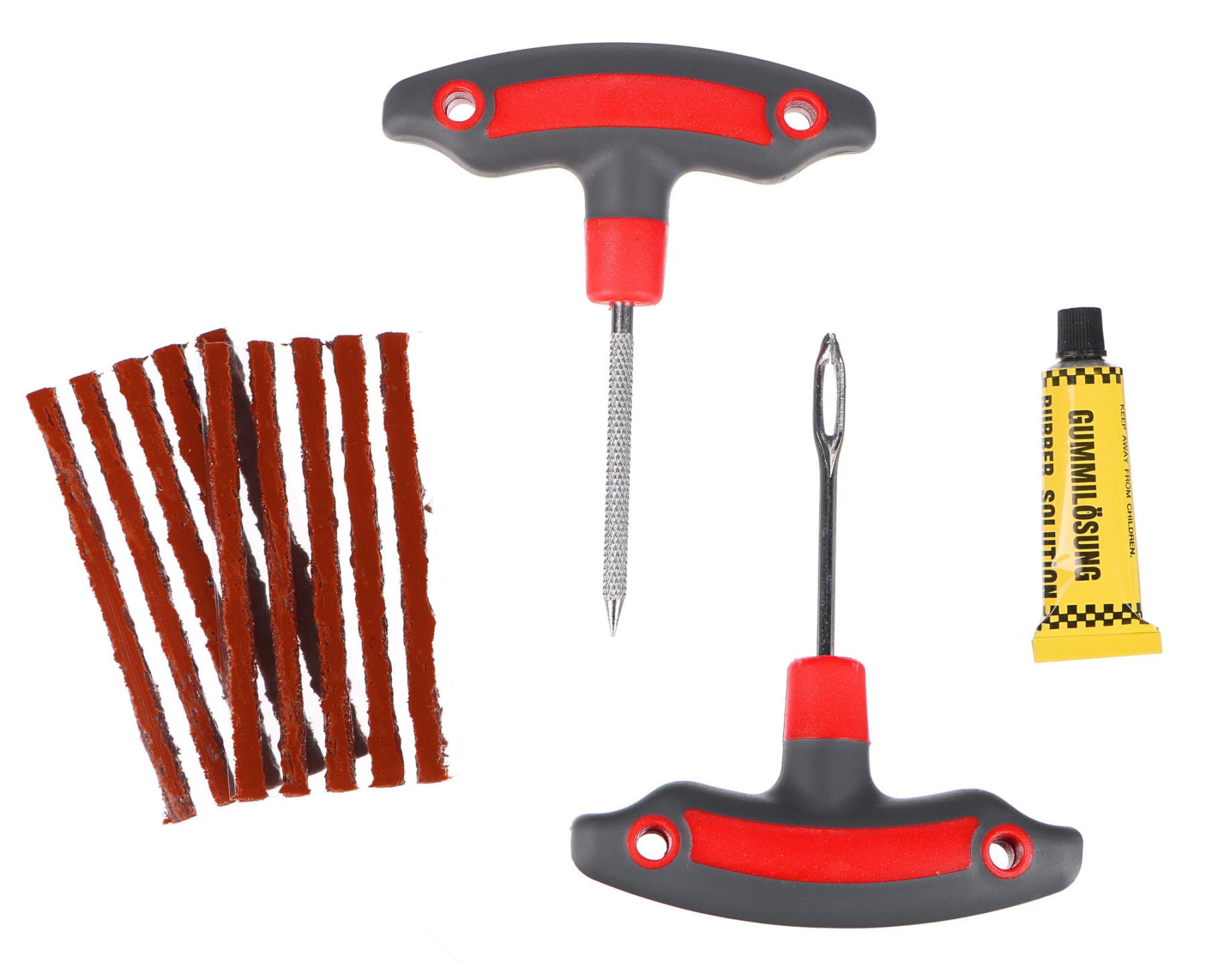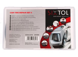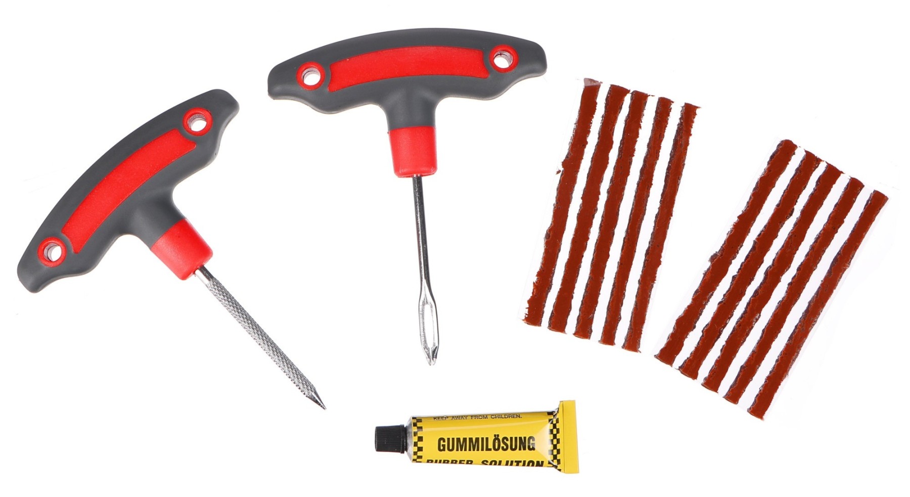 Súprava na opravu defektu pneumatiky CAR TIRE REPAIR SET 3 je nevyhnutným pomocníkom každého vodiča. Umožní vám ľahko, rýchlo a dočasne vyriešiť nečakaný defekt bez nutnosti navštíviť servis bez ohľadu na to, či ste na dlhej ceste, v práci alebo doma.Návod na použitie: Nájdite miesto, kde je pneumatika prepichnutá, prípadne odstráňte predmet, ktorý spôsobil defekt. Do otvoru zasuňte prieťažník a následne ho preťahujte smerom hore a dole - do doby než bude ľahko prechádzať otvorom - týmto je otvor vyčistený a pripravený. Knôt zbavený ochrannej fólie prevlečte otvorom vidlice a naneste naň vulkanizačný roztok. Zastrčte vidlicu s nasadeným knôtom do otvoru tak, aby jeho polovica zostala z vonkajšej strany pneu, potom otočte vidlicou a pomaly ju vytiahnite. Odrežte zvyšok knôtu čo najbližšie k pneumatike.