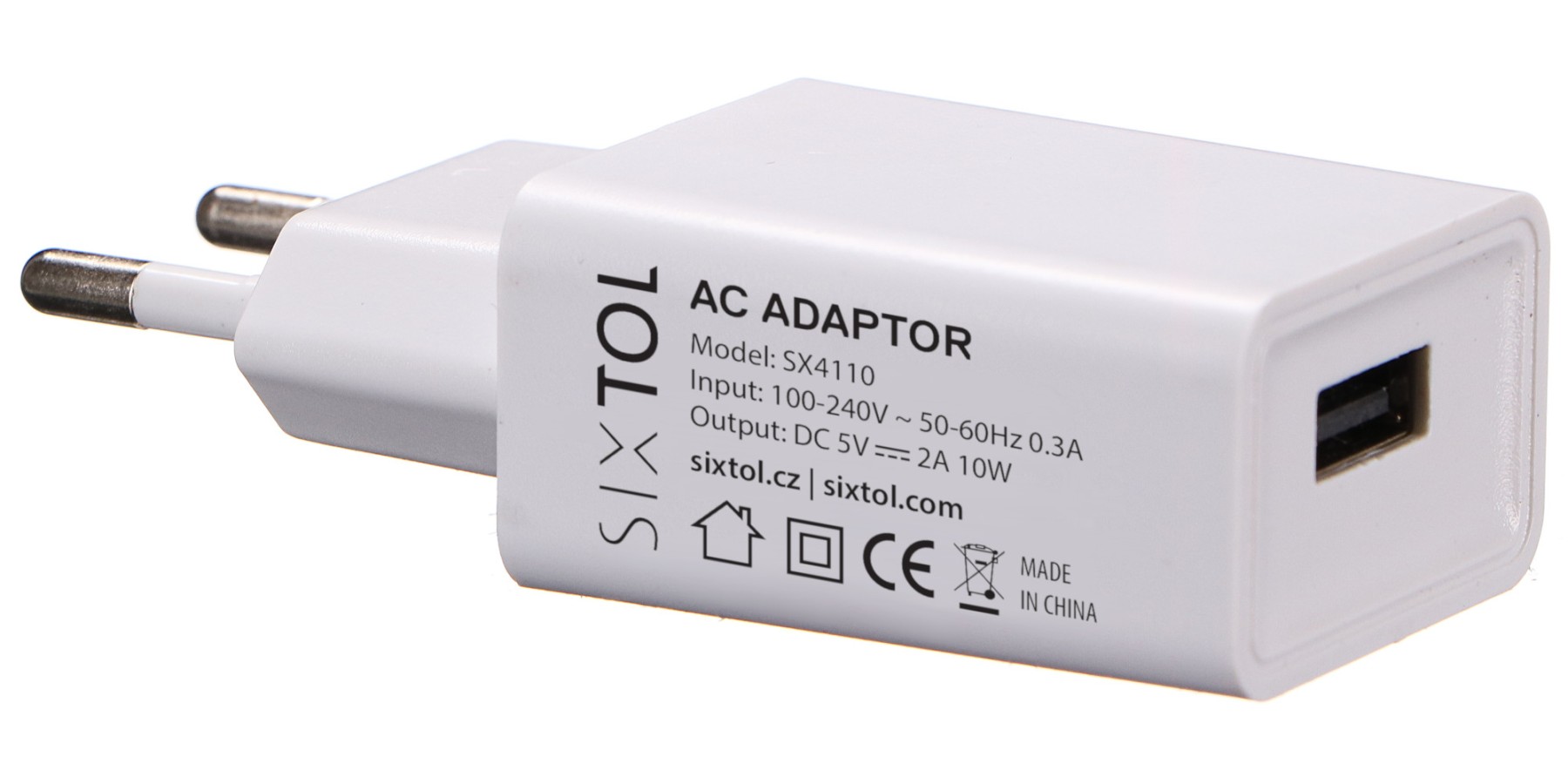 Náhradný univerzálny USB sieťový adaptér 5V/2A/100-240 V/50-60 Hz, pre modely difuzérov SIXTOL Car Flame, Bloom, Honey Day a Night.